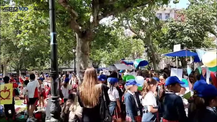La Plaza de los Sitios de Zaragoza ha sido esta mañana un hervidero de escolares, llegados desde varios puntos de Aragón, que han compartido sus proyectos de emprendimiento escolar.