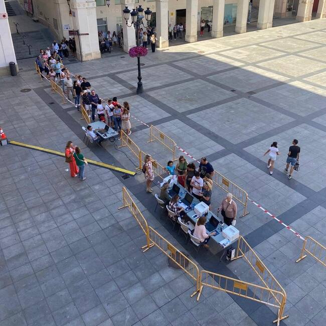 Ayer, en dos horas y media de tiempo, se entregaron 4.380 bonos para el público que acudió de forma presencial a la plaza de López Allué.