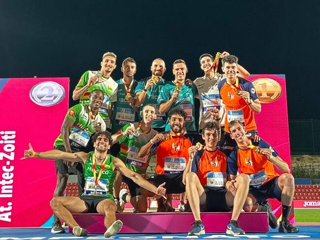 Los atletas de Intec Zoiti junto a los de Playas de Castellón y Hospitalet en el podio / RFEA