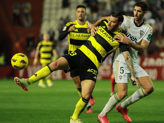 Enrich intenta controlar un balón ante el marcaje de Ros en el Albacete - Real Zaragoza de la pasada temporada / Real Zaragoza