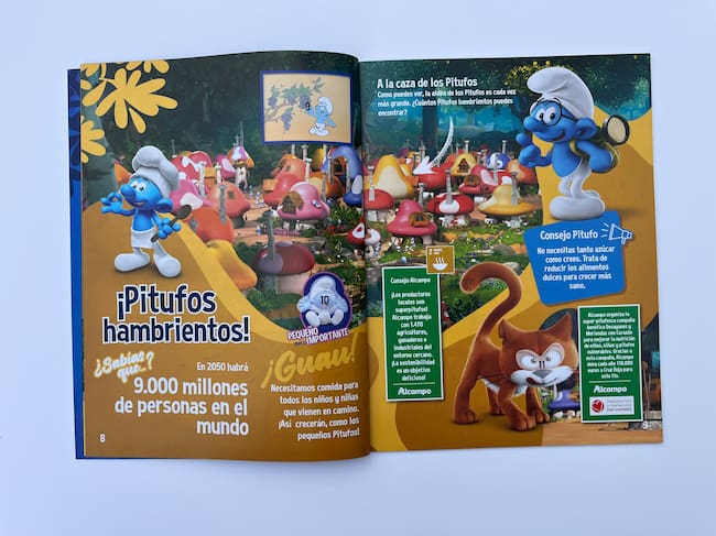 Por cada 20 euros de compra, se entregará a los clientes un sobre con tres cromos y un sello. Los cromos serán para completar un álbum (1,99 €) donde los más pequeños aprenderán, de la mano de Los Pitufos, qué son los Objetivos de Desarrollo Sostenible y cómo ellos pueden aportar a crear un Planeta mejor para todos.