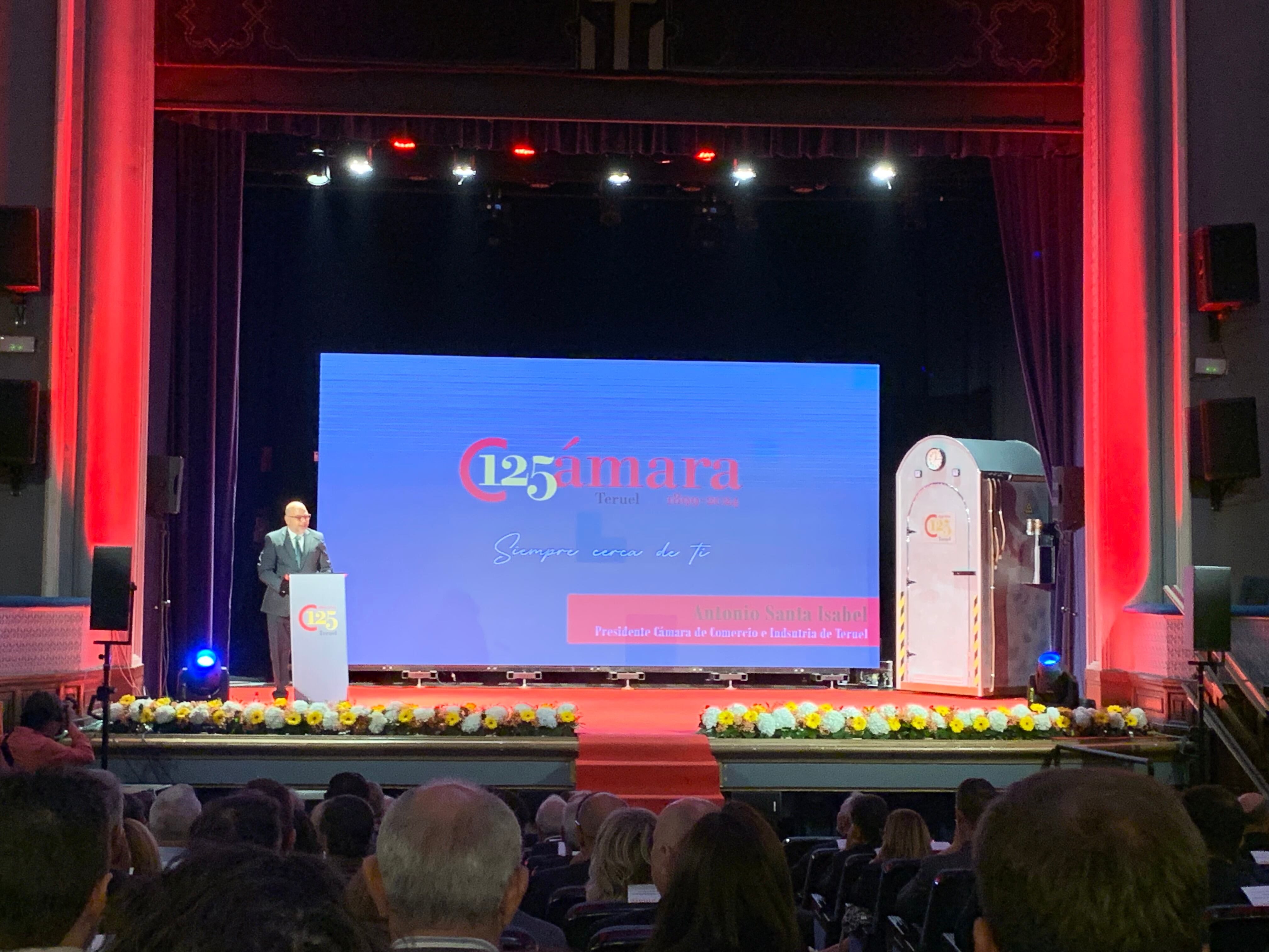 La evolución empresarial de Teruel en estos últimos 125 años ha tenido como testigo a la Cámara de Comercio de Teruel y este miércoles se han rememorado los principales hitos en este aniversario tan especial. Con la presencia del presidente del Gobierno de Aragón, Jorge Azcón, los principales actores políticos y económicos de la provincia han llenado el Teatro Marín en una gala conducida por José Miguel Meléndez y Eva Defior.