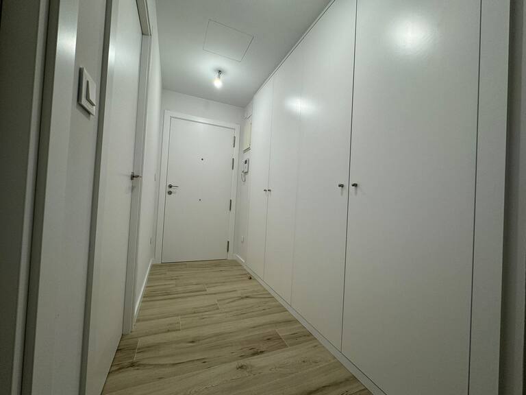 Carpintería exterior de aluminio blanco con rotura de puente térmico y vidrio triple climalit, carpintería interior lacada en blanco, suelos de gres porcelánico, calefacción, refrigeración y agua caliente mediante sistema de aerotermia de alta eficiencia.