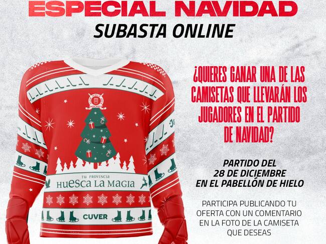 Los jugadores del Club Hielo Jaca disputarán el partido contra los Panthers del Milenio con la camiseta de edición especial de Navidad, equipación que se subastará entre los aficionados a través del perfil oficial del CHJ en Facebook.