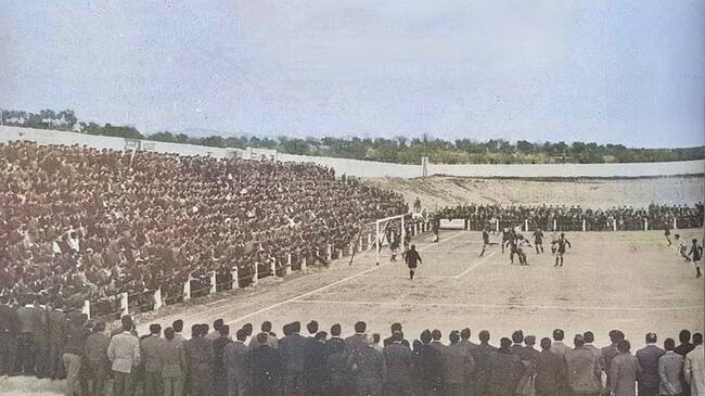 Partido de fútbol en el municipal de los deportes. Foto: UD Barbastro