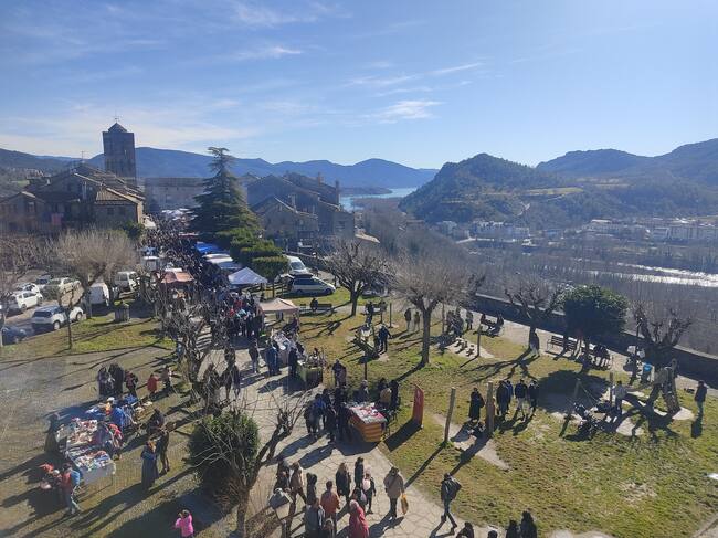 Eran las diez de la mañana cuando los primeros visitantes se acercaban al casco antiguo, plagado de artesanos y comerciantes de diferente índole y procedencia: embutidos, mermeladas, repostería, mieles, complementos, literatura o antigüedades se mezclaban con representantes de asociaciones locales y provinciales explicando su altruista labor. Mientras tanto, los más pequeños podían dar un paseo en poni, ver la demostración de caza de trufa con perro o participar en el taller de cuerda. La presencia del proyecto Arto-Un Paso Atrás, recuperando el patrimonio semillero de Sobrarbe, ha sido también otra de las paradas obligatorias para aquellos que saben de la importancia de cuidar y dar vida al legado alimenticio de nuestros ancestros, y los que paseaban por la Plaza se han llevado de recuerdo las últimas unidades de carrasca, símbolo del territorio.