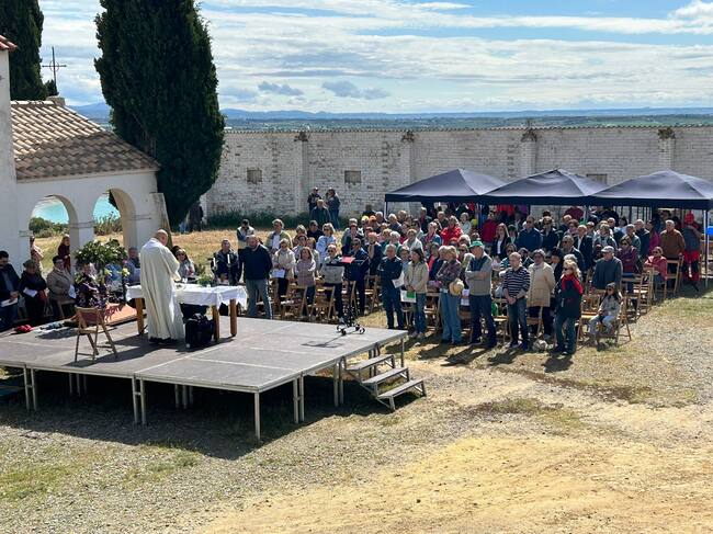 Celebración religiosa en la ermita de la Virgen del Romeral en Binéfar
