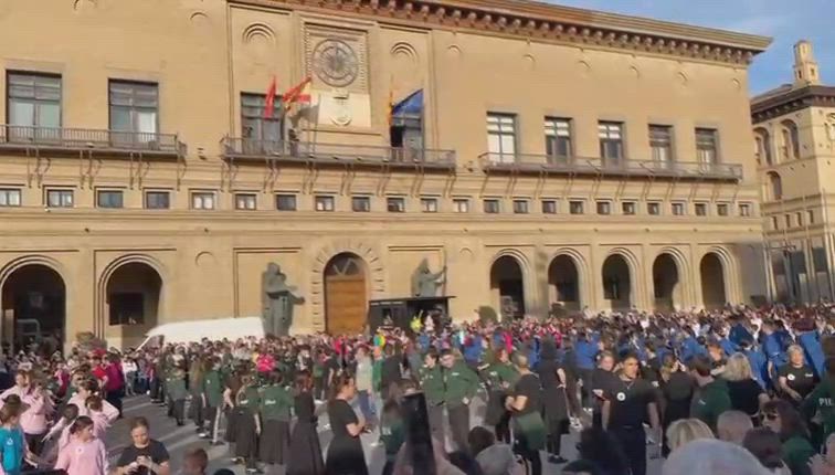 La Jota de Teruel ha sido bailada por más de 2.000 personas en la plaza del Pilar de Zaragoza para Aspanoa, en el Día Internacional del Cáncer Infantil. A las 17.00 horas puntual han comenzado a sonar los primeros acordes de esta popular jota y se ha desatado la emoción.