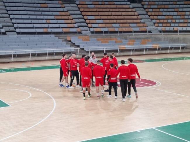 El Bada Huesca durante un entrenamiento en el Palacio de los Deportes