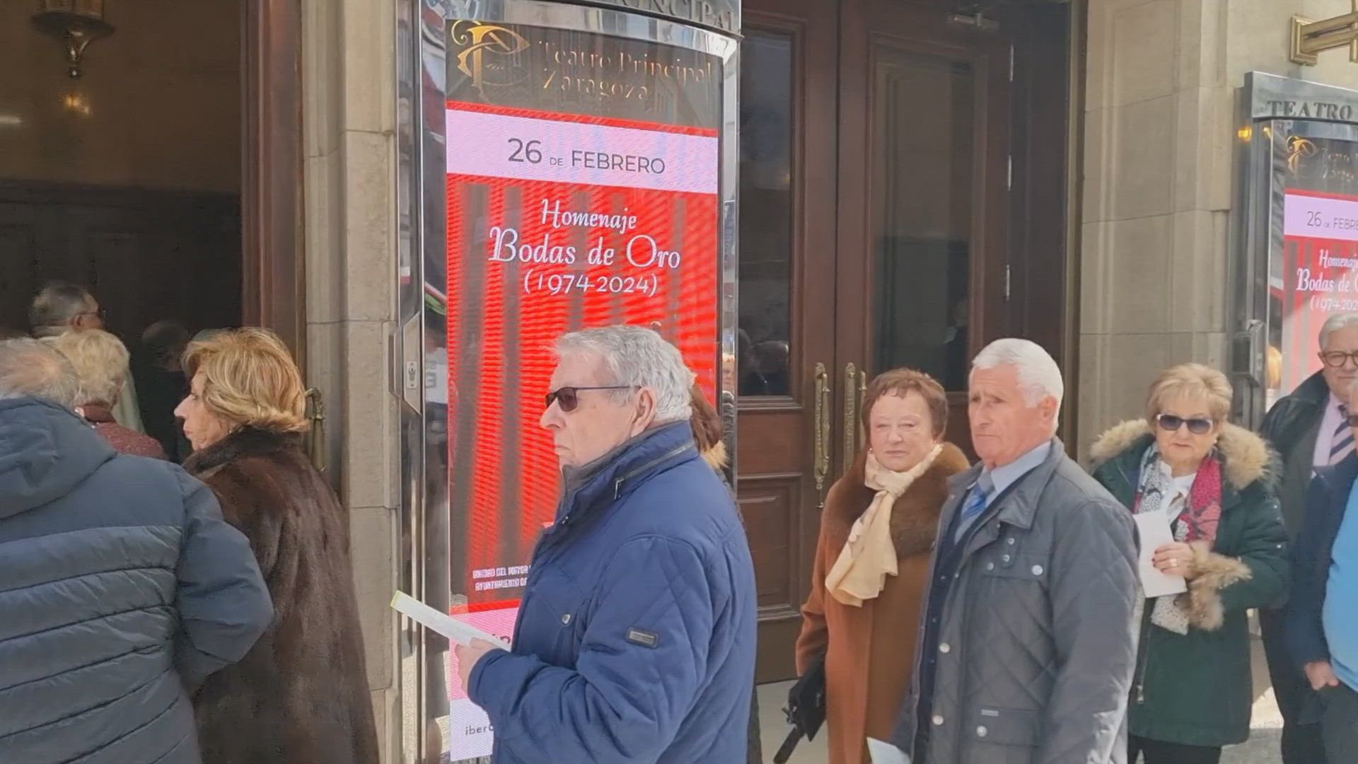 El Ayuntamiento de Zaragoza ha homenajeado a los matrimonios que este año cumplen sus bodas de oro, con el tradicional acto en el Teatro Principal