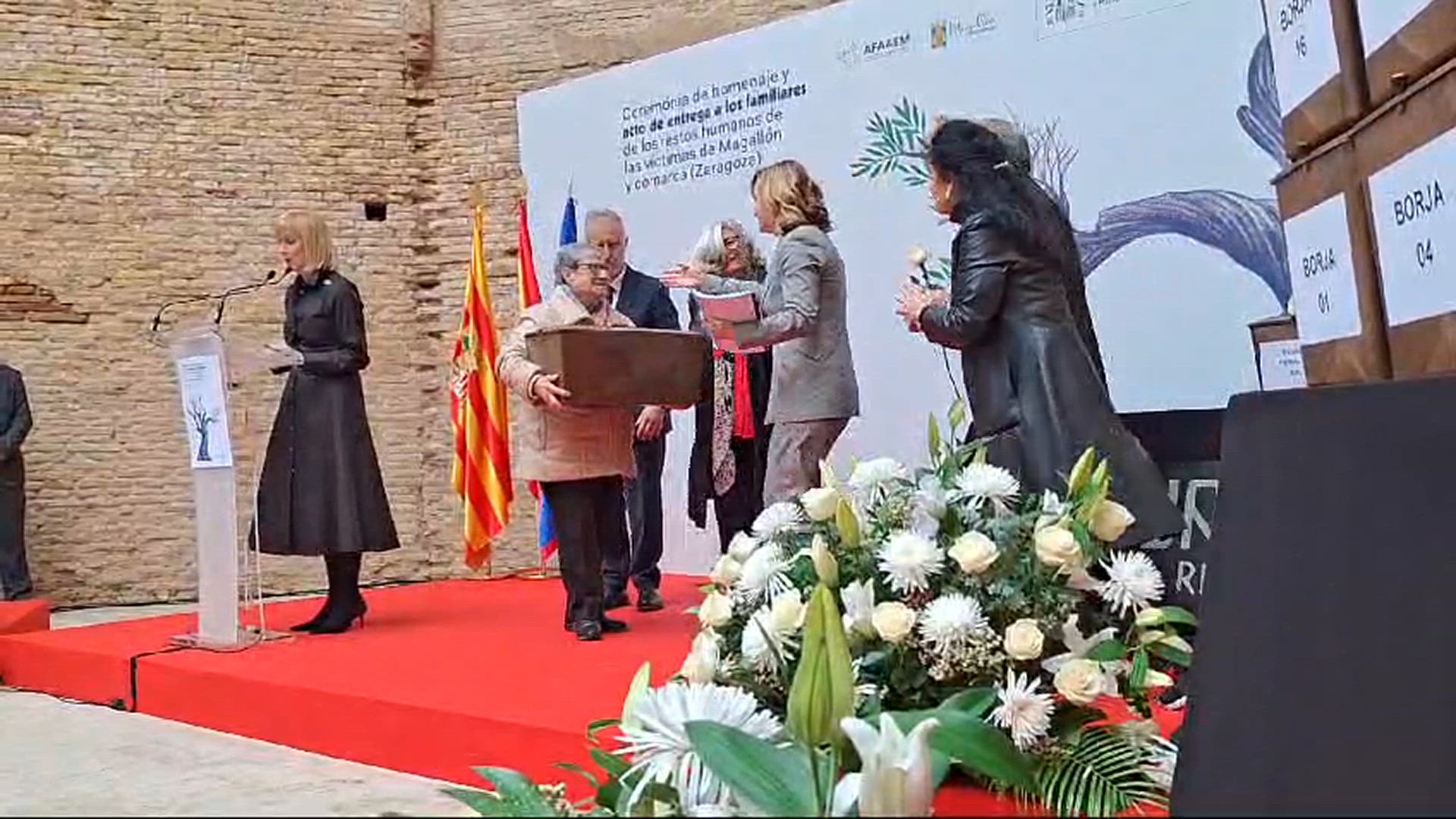 Los fusilaron en el 36, los enterraron en una fosa común en Borja de donde los sacaron en 1959 para ser trasladados al entonces Valle de los Caídos. Son una pequeña parte de los 33.000 cuerpos, 8.500 aragoneses, que aún permanecen en el que fuera el mausoleo del dictador. En un emotivo acto, el ministro Ángel Víctor Torres aseguraba que "este es un acto de pureza democrática, para que no vuelva a pasar".