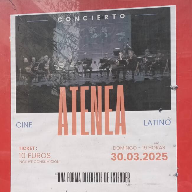 Dentro de la programación de la Sala Genius este domingo le tocará el turno a la Orquesta Atenea a las 19 horas. En esta ocasión la orquesta realizará un concierto dividido en dos bloques: Por un lado, música de latina (tangos, mambos, etc) y otro de bandas sonoras de películas muy reconocibles.