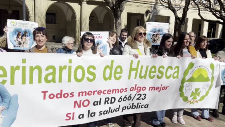 Fernando Carrera, presidente del Colegio de Veterinarios de Huesca hacía de portavoz de la movilización de la capital oscense y reivindicaba la labor de estos profesionales. Hablan de un trabajo fundamental en la reducción del uso de los antibióticos y el problema que supone para la salud de las personas las antibioresistencias.