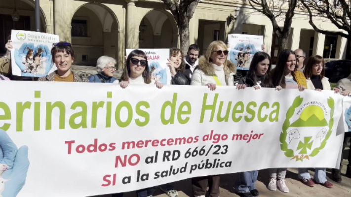 Fernando Carrera, presidente del Colegio de Veterinarios de Huesca hacía de portavoz de la movilización de la capital oscense y reivindicaba la labor de estos profesionales. Hablan de un trabajo fundamental en la reducción del uso de los antibióticos y el problema que supone para la salud de las personas las antibioresistencias.