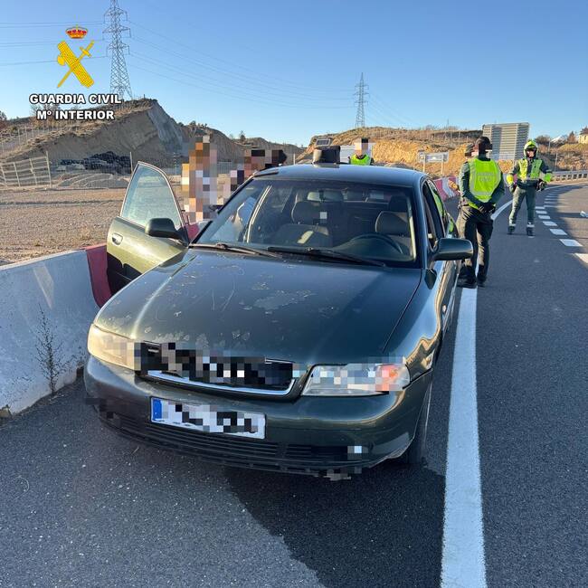 Finalmente, a la altura del km 614,000 la patrulla pudo dar el alto al turismo, apoyada por otra patrulla del Destacamento de Tráfico de la Guardia Civil de Huesca y dos patrullas de Seguridad Ciudadana de la Compañía de la Guardia Civil de Jaca, pudiéndose percatar los agentes que con el conductor viajaban dos personas más, una de ellas en estado de gestación, así mismo, en el momento de la identificación, se pudo comprobar en la base de datos informáticos de la DGT que nunca había obtenido la autorización administrativa que le habilitaba la conducción de su vehículo, siendo investigado por los mismos hechos hacía poco más de un mes.