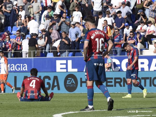 Los jugadores del Huesca cabizbajos tras la derrota con el Oviedo / LaLiga
