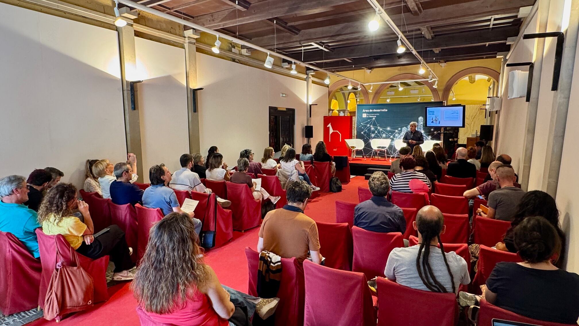 La jornada, organizada por el Área de Economía, Atracción de Inversiones, Fondos Europeos e Innovación, ha sido inaugurada por la alcaldesa de Huesca, Lorena Orduna, y se desarrolla en horario de mañana y tarde, con ponencias, conversatorios y experiencias reales centradas en modelos de ciudad que apuestan por las industrias culturales y creativas como motor de transformación.