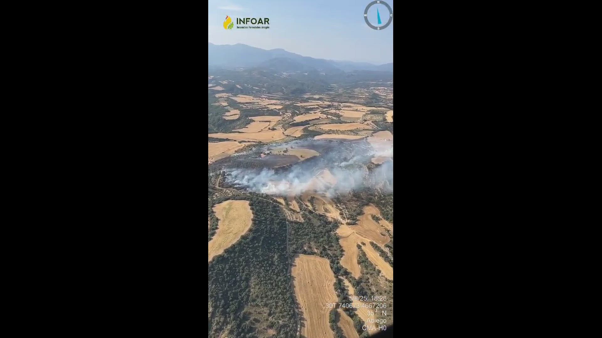 El fuego, que ha afectado a una superficie provisional de 23 hectáreas de terreno agrícola y forestal, se ha originado en el término municipal de Abiego, aunque en un primer momento se había situado en el de Bierge.