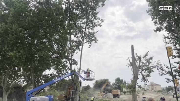 Indignación vecinal con la tala de dos plataneros por la urbanización de Harineras