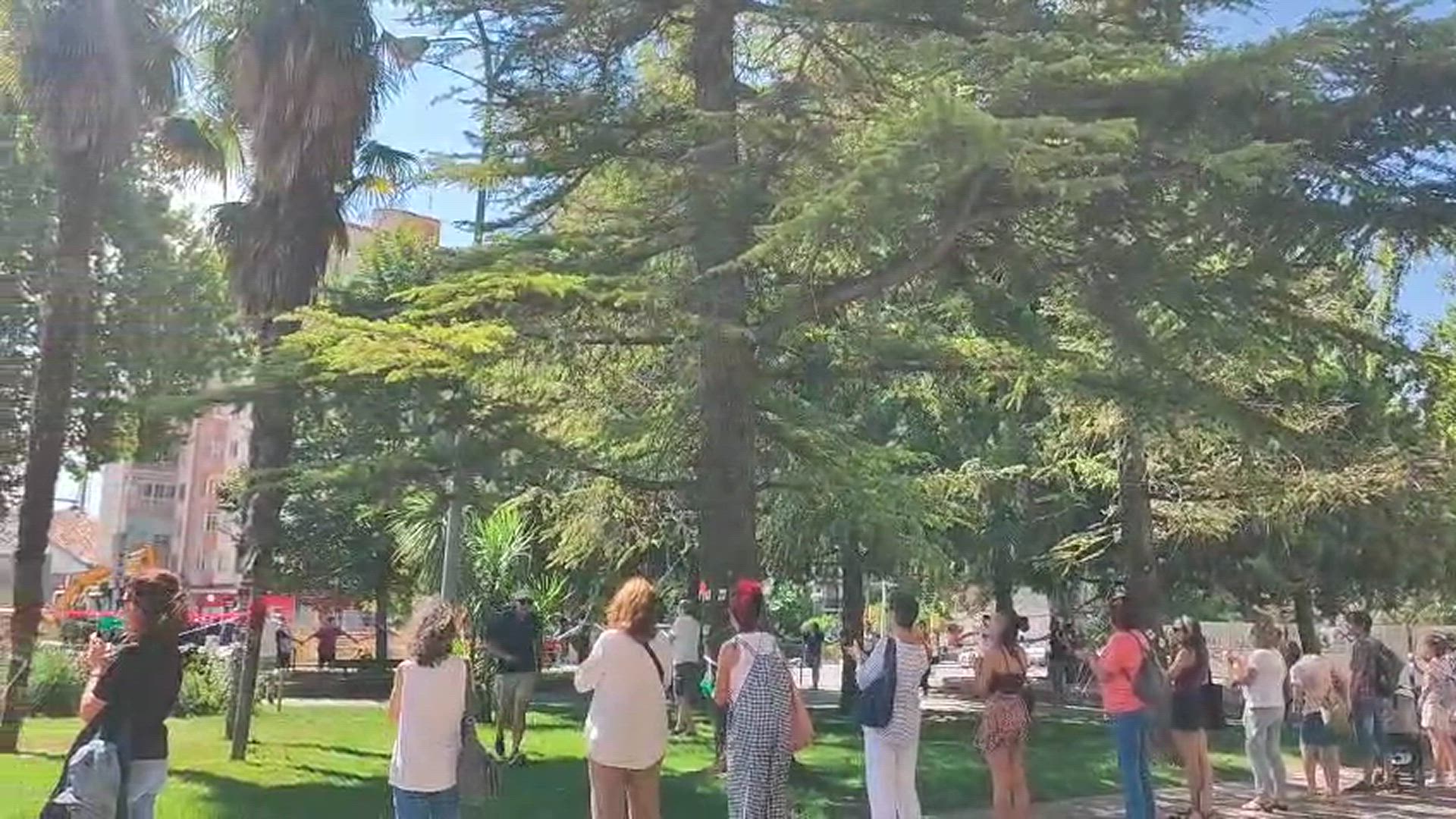 Tras la lectura del manifiesto los presentes realizaron una cadena humana para "abrazar" los árboles que siguen en pie, decorados por ellos mismos en señal de protesta.