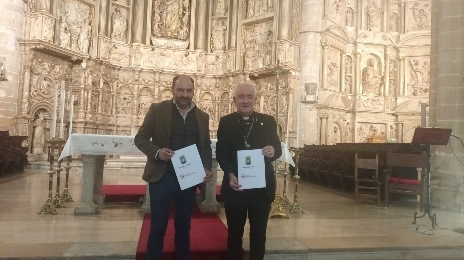 El Ayuntamiento de Barbastro y el Obispado Barbastro-Monzón han suscrito un convenio de colaboración de 100.000 euros para la actualización del Plan Director de la Catedral de Barbastro.