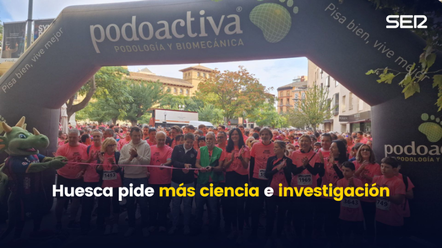 “Corramos por la ciencia” era el lema de este año de la carrera contra el cáncer de mama en Huesca. Una cita que este año ha reunido a unas 4.000 personas y que ha superado los registros del año anterior. Una carrera que tal y como se indicaba desde la AECC tiene una doble vertiente, por un lado, conseguir fondos para la investigación y por otro acompañar a las personas que conviven con esta enfermedad.