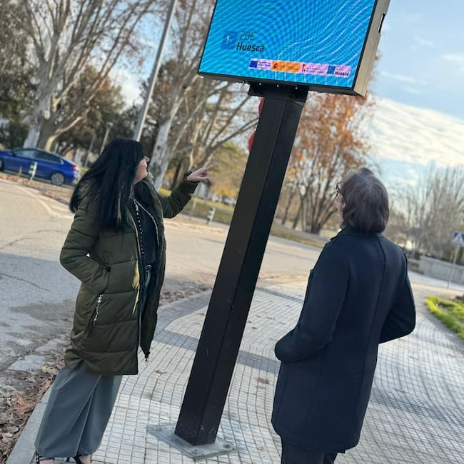 • La instalación de siete pantallas LED informativas, que ofrecerán datos sobre el tráfico, información ambiental y servicios de interés. Estas pantallas se han ubicado en puntos estratégicos de acceso al casco urbano: Martínez de Velasco, plaza de Santa Clara, Palacio de Congresos, paseo de Ramón y Cajal, avenida del Doctor Artero, paseo de Lucas Mallada y calle de Alcañiz.