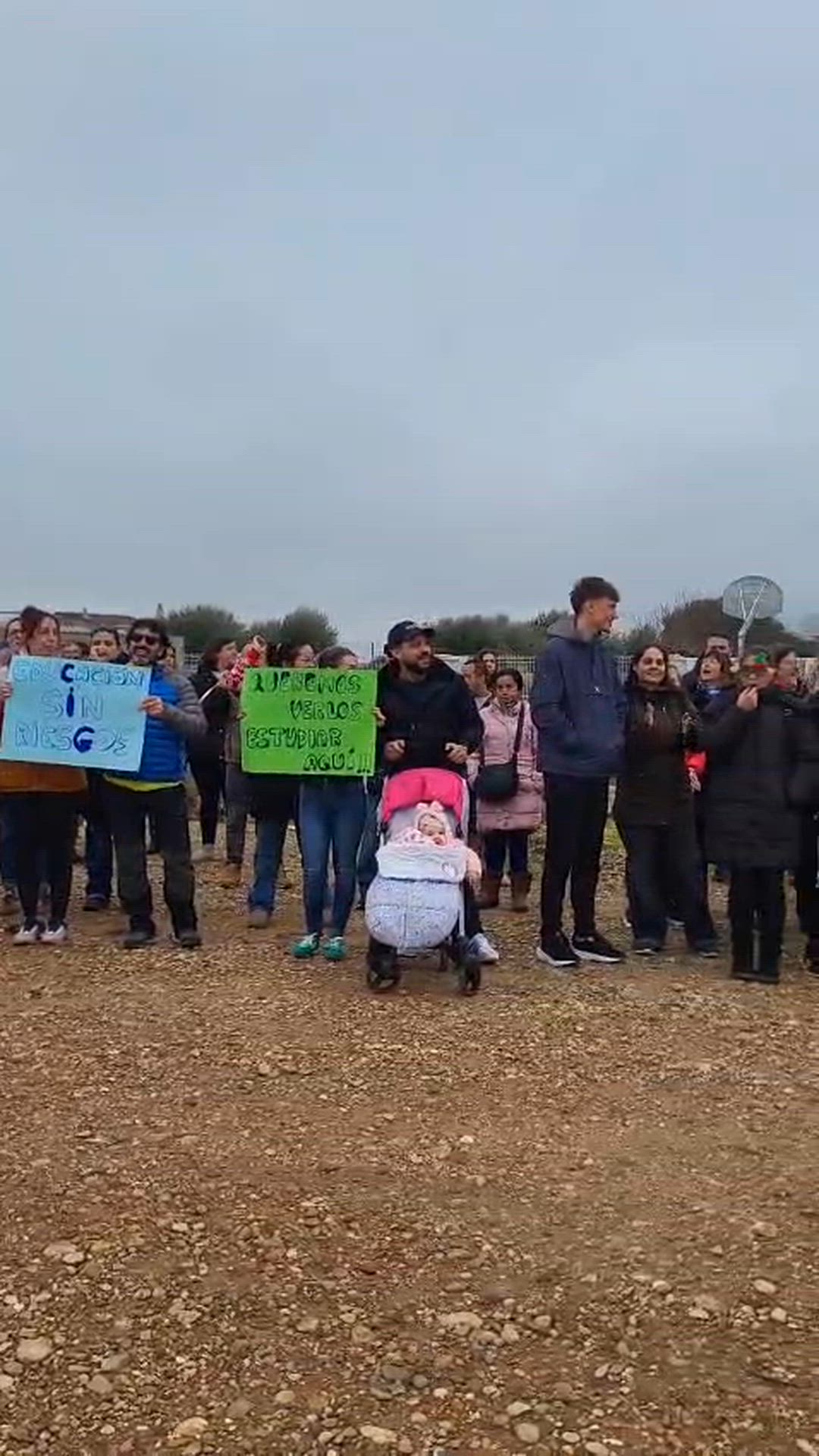 Las familias de Pinseque (Zaragoza) reclaman la construcción de un centro educativo, que permita cursar la ESO en este municipio de la Comarca Ribera Alta del Ebro. Cada día salen 5 autobuses al instituto de Alagón, que carece de espacio suficiente. Este mediodía se han concentrado en el solar donde debería construirse.