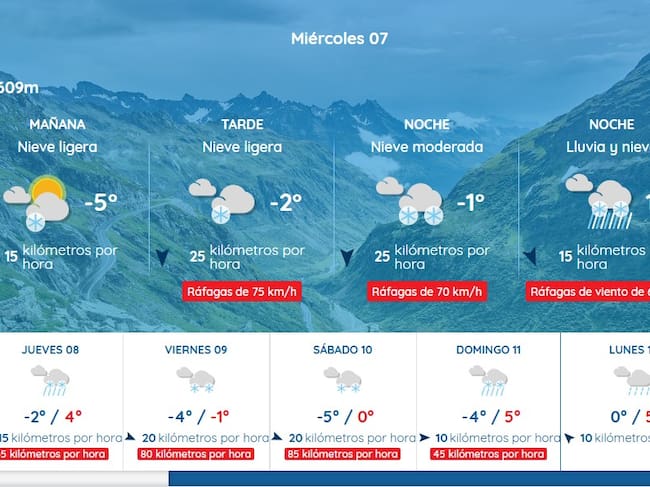 Viento: Moderado o fuerte del oeste y noroeste, con rachas muy fuertes en cotas altas y zonas expuestas, donde se podrían superar los 90 km/h.