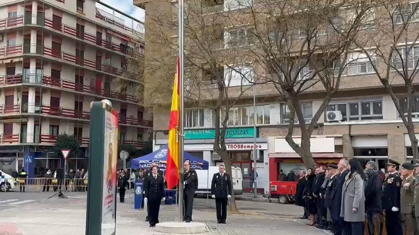 Lo ha hecho en la plaza Unidad Nacional de la capital oscense, con un emotivo acto especialmente marcado por la entrega de diplomas y condecoraciones, pero sobre todo se destacaba la coordinación entre todas las Fuerzas y Cuerpos de Seguridad para preservar la seguridad.