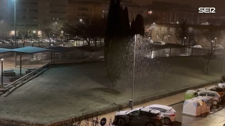 Nieva en Huesca a las 7 de la mañana