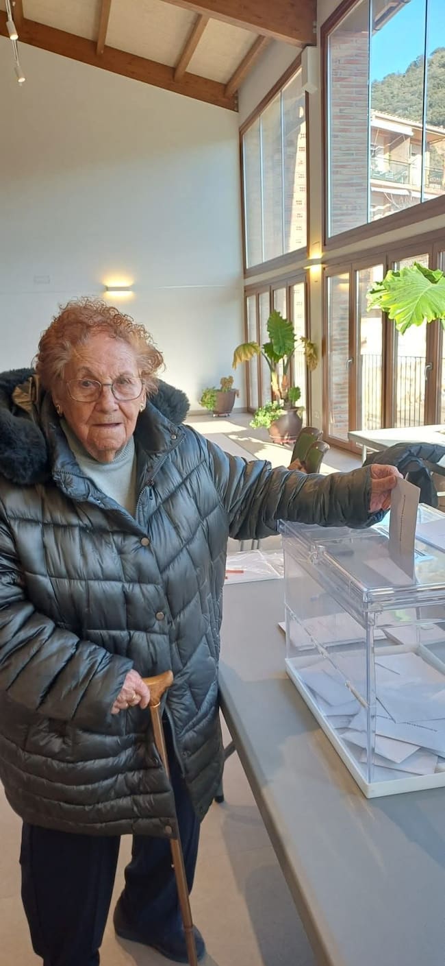 En El Grado, localidad perteneciente a la Comarca de Somontano de Barbastro, votó Lidia Beneded Fillat de 100 años, que el día 25 de este mes cumplirá 101 años.