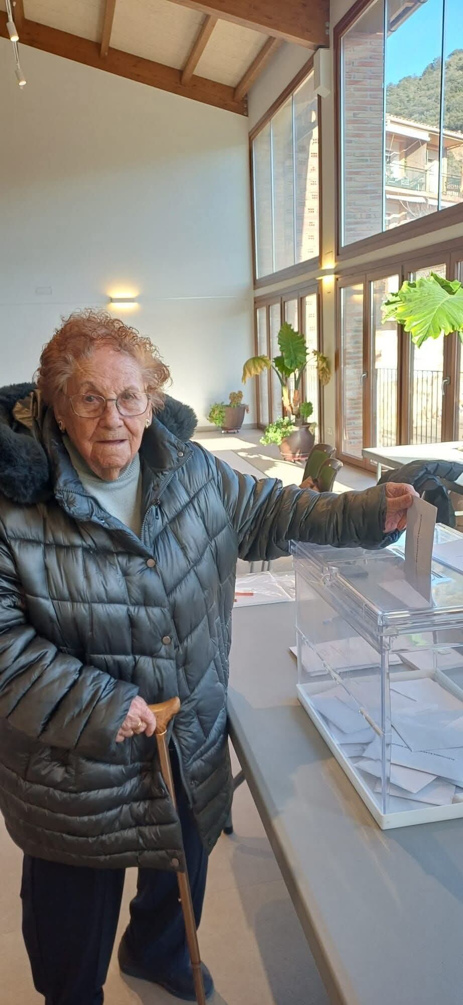 En El Grado, localidad perteneciente a la Comarca de Somontano de Barbastro, votó Lidia Beneded Fillat de 100 años, que el día 25 de este mes cumplirá 101 años.