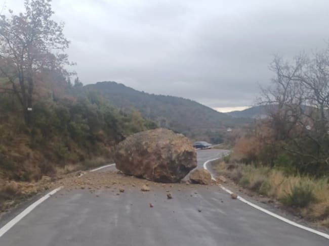 La roca de grandes dimensiones quedó en medio de la calzada en la A-2210