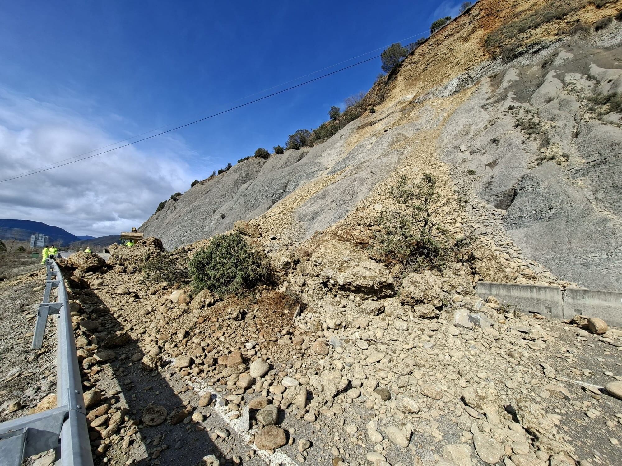 Imagen del desprendimiento en la N-260 termino municipal de Aínsa