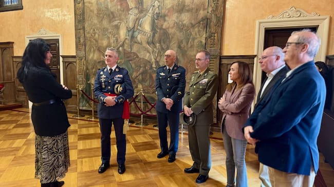 Visita al Ayuntamiento de Huesca del general jefe de la Base Aérea de Zaragoza