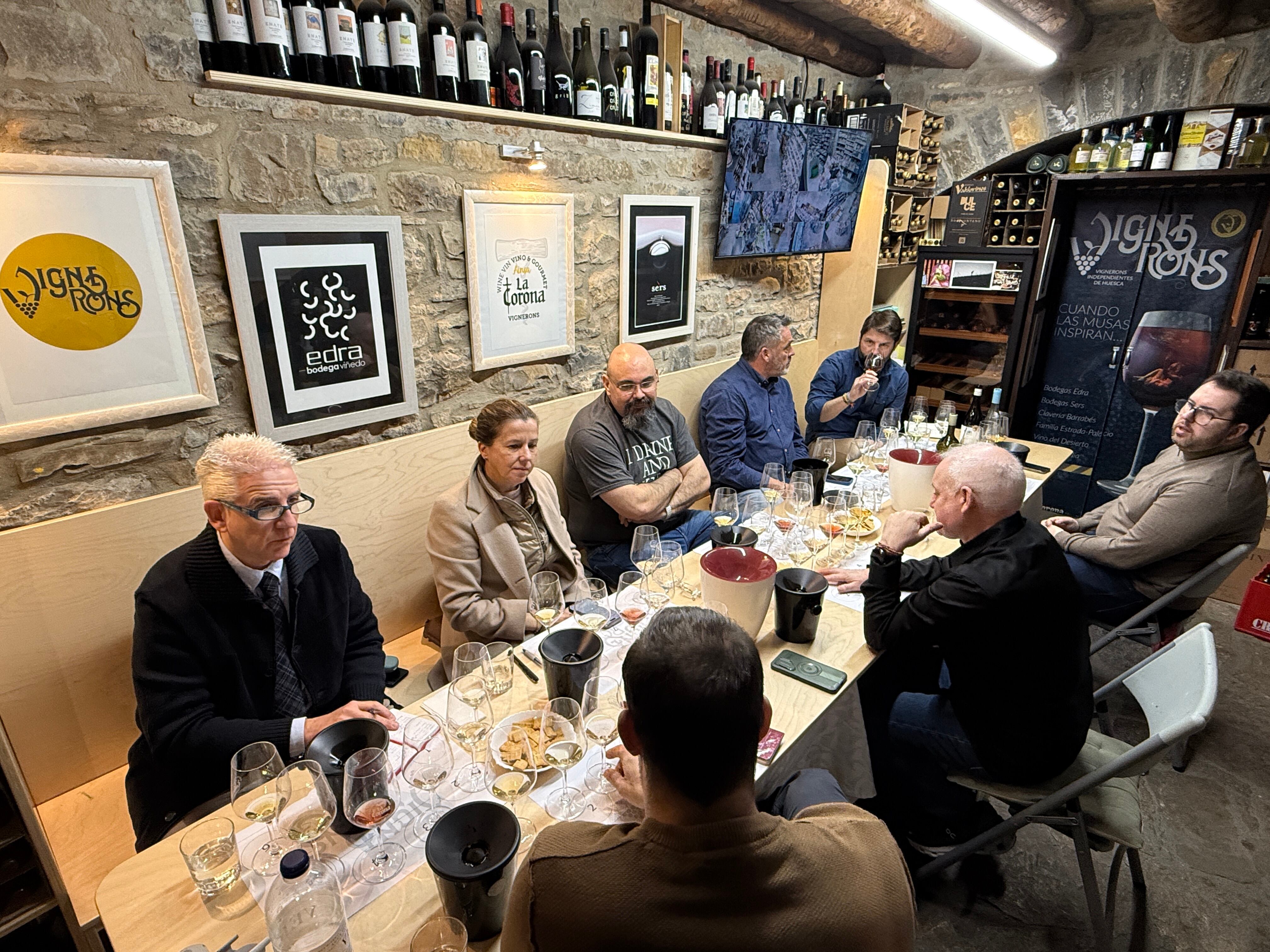 Concluye en Aínsa el panel de cata Vignerons de Huesca 2026 con excelentes perspectivas de cara al décimo aniversario. Una treintena de participantes, entre gerentes de restaurantes de primer nivel tanto de la provincia de Zaragoza como de la de Huesca, expertos de todo el país, formadores, enólogos y periodistas especializados han pasado por el encuentro, que se dividía entre las jornadas del pasado miércoles 18 en la tienda de especialidades Vinos San Lorenzo de Huesca, y la de este sábado 21 en La Corona de L'Aínsa, ubicada en la conocida villa medieval.