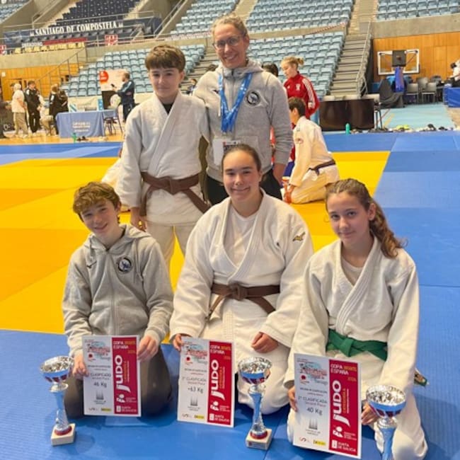 Desde la Escuela de judo Sobrarbe: Marina Fluerica-40kg, gana con solvencia sus combates, consiguiendo finalmente la plata. Leo Mamolar -38kg, resuelve sus combates ágilmente, hasta que en semifinales una injusta decisión arbitral le saca de las medallas. Fabián Campoy, firma una muy buena competición llegando a la final con el contrincante gallego que le gana por la mínima y se cuelga la plata.