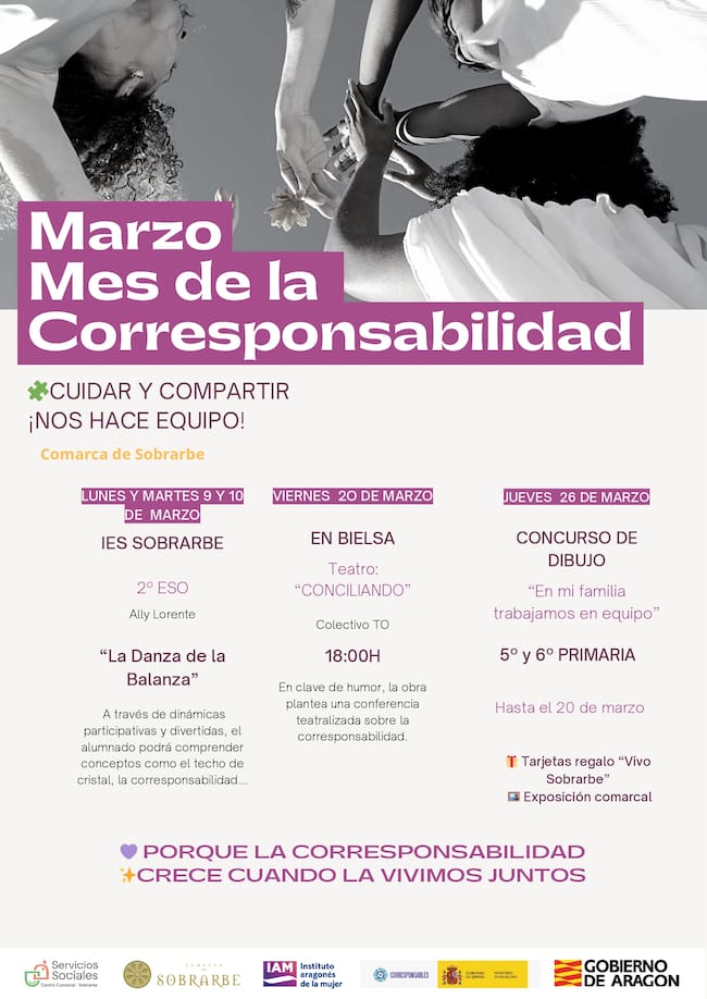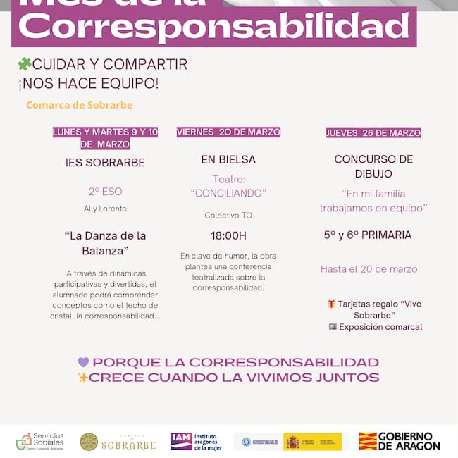 Con motivo del Día Nacional de la Conciliación y la Corresponsabilidad, que se celebra el 23 de marzo, la Comarca de Sobrarbe, a través del Plan Corresponsables gestionado por sus Servicios Sociales, impulsa una programación especial durante todo el mes bajo el nombre “Mes de la Corresponsabilidad”.