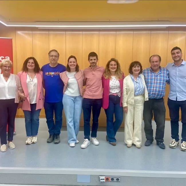Mercedes Castán Acín junto a sus compañeros del PSOE Jaca
