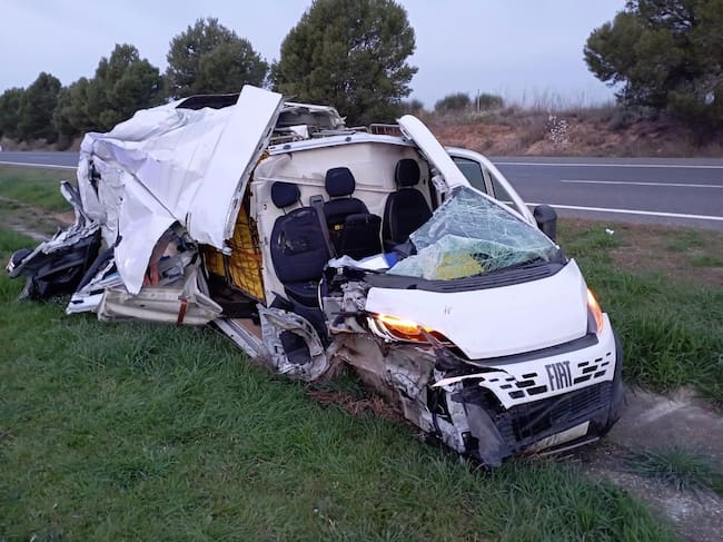 Estado en el que ha quedado la furgoneta siniestrada