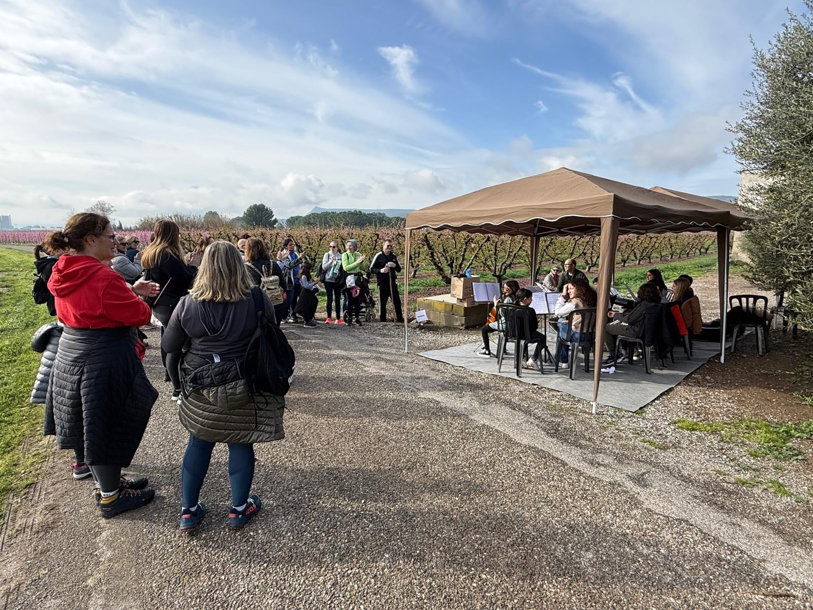 Como parte de esta colaboración asociativa, los caminantes han disfrutado de diversas paradas musicales a cargo de entidades culturales de Fraga, quienes han amenizado el paseo. Esta muestra artística se ha convertido en una de las señas de identidad de la ruta, enriqueciendo la experiencia de los participantes.