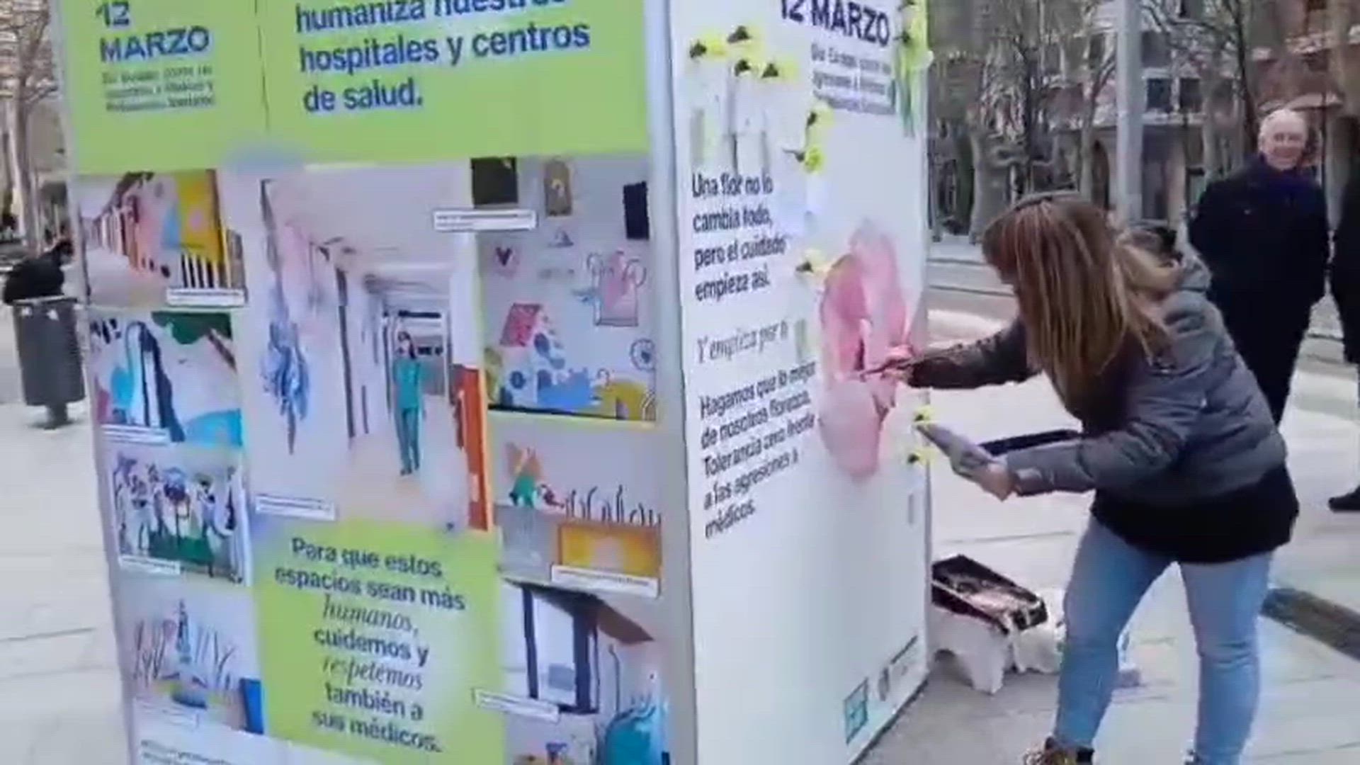 Con motivo del Día Europeo contra las Agresiones, el Colegio de Médicos de Zaragoza ha instalado en la Plaza Aragón de Zaragoza una intervención artística del colectivo Believe in Art. Paralelamente, el sindicato CSIF se ha concentrado ante la Consejería de Sanidad para reclamar más medidas de protección.