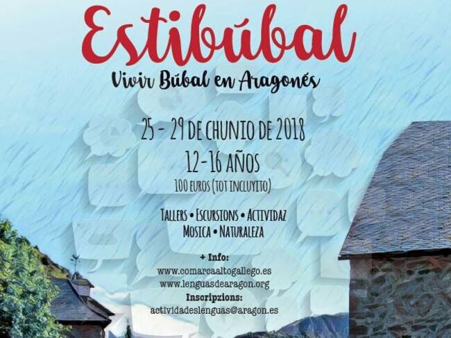 La actividad –denominada “Estibúbal. Vivir Búbal en aragonés”- se celebrará del 25 al 29 de junio. Los interesados pueden solicitar una plaza hasta el 3 de junio. La solicitud puede descargarse en la página web www.lenguasdearagon.org (se adjunta link al archivo al final de la nota) y debe enviarse a la dirección actividadeslenguas@aragon.es.
