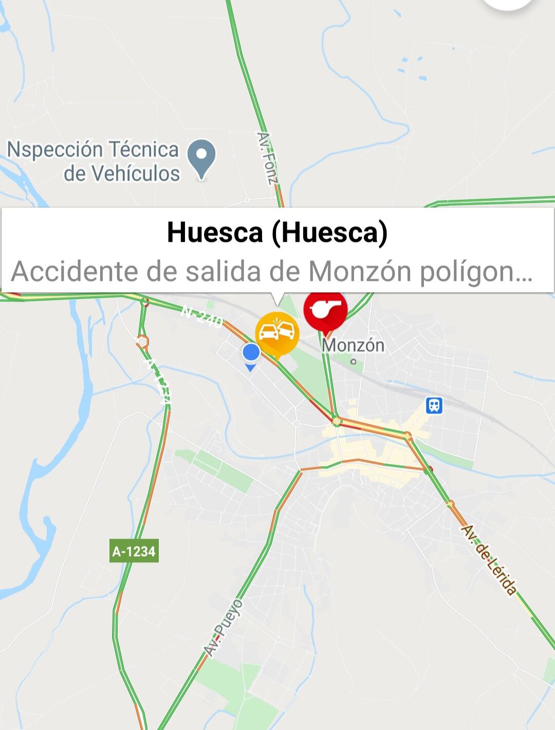 Accidente de tráfico con dos heridos graves en el límite de Monzón con Castejón del Puente