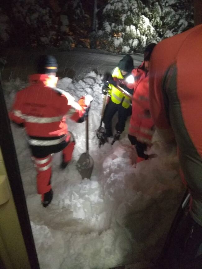 Más de medio centenar de pasajeros debían ser evacuados este martes cuando viajaban en el Canfranero. El tren salía de la estación de Canfranc y recorría escasos 300 metros antes de quedar atascado por la nieve en las vías. Sobre las 21 horas se evacuaba a los pasajeros en un autobús y una furgoneta tras un periplo en el que los trabajadores de Renfe e incluso algún vecino de Canfranc ayudaban a limpiar las vías para que el tren pudiera retroceder hasta la estación.