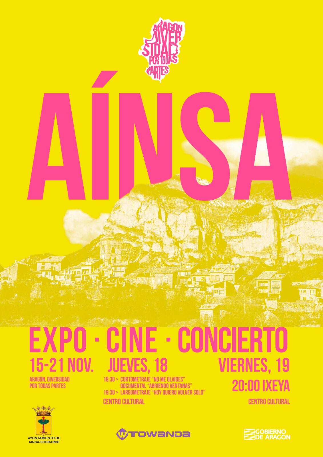 La propuesta viene acompañada de una sesión de cine que tendrá lugar el jueves 18 a partir de las 18:30h en el Centro Cultural. El cortometraje “No me olvides”, de Ferrán Navarro y entre cuyo reparto se encuentra la actriz aragonesa Luisa Gavasa, será la primera de las proyecciones. Le seguirán el documental “Abriendo ventanas” dirigido por Viky Calavia y el largometraje “Hoy quiero volver solo” de Daniel Ribeiro. Al día siguiente, además, la banda femenina IXEYA ofrecerá un concierto a las 20h en el mismo lugar. Todas las actividades son gratuitas y de libre acceso hasta completar aforo.