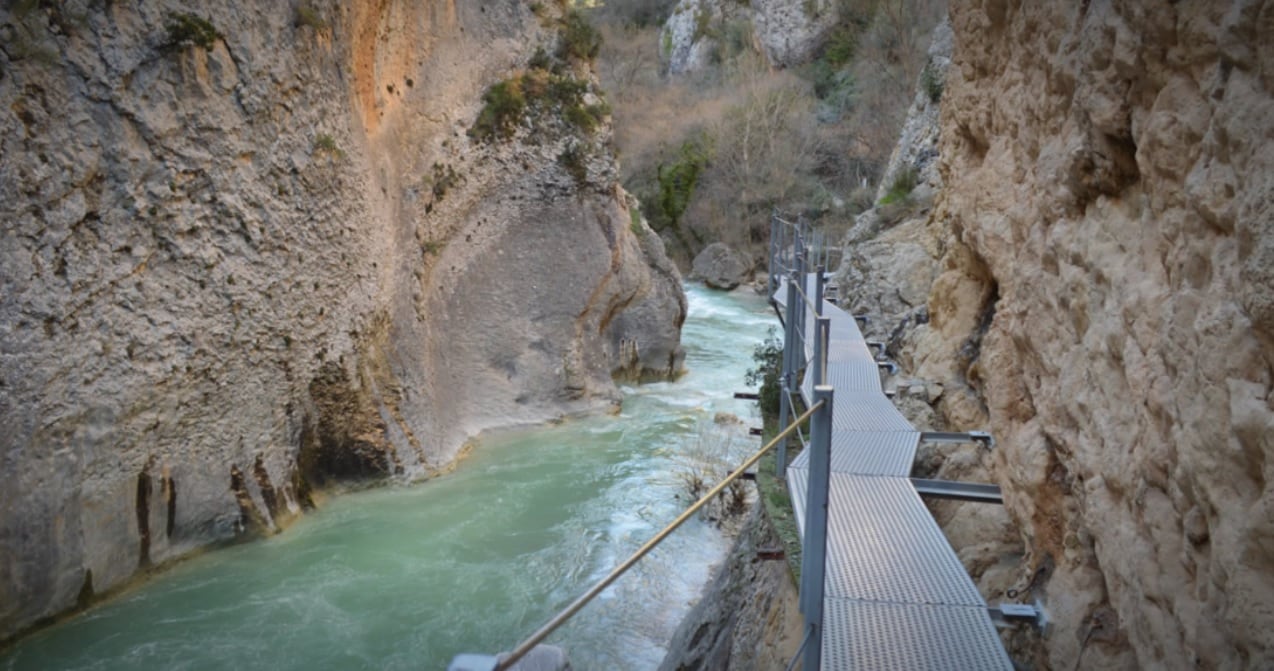 Con una población de apenas 300 habitantes, Alquézar recibe cada año más de 150.000 visitantes a la Ruta de las Pasarelas, un recorrido circular que discurre sobre el cauce del río Vero. En dos tramos y con un mirador al final del recorrido, las Pasarelas de Alquézar permiten a los senderistas disfrutar de una actividad de aventura sencilla, con avistamiento de aves y en un entorno natural único: el excavado por el río Vero, durante siglos, sobre la roca calcárea, formando unas atractivas playas naturales.