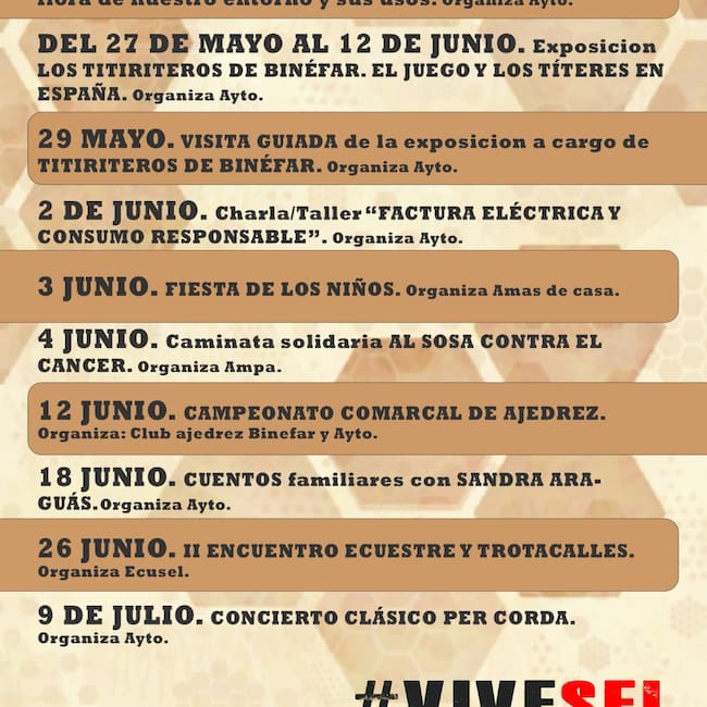 Del 27 de mayo al 12 junio, en el Local Social, se podrá ver la exposición “Los titiriteros de Binéfar. El juego y los títeres en España”, en colaboración con la Diputación Provincial de Huesca.