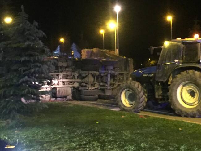 Sobre las 20’20 horas de este miércoles un camión articulado volcaba una gran carga de pacas de paja en el Llano de la Victoria de Jaca. Los conductores implicados salían ilesos pero, además de los daños materiales en el vehículo y el mobiliario urbano, se tuvo que cortar la Nacional - 240 durante más de tres horas. Hasta las 00 horas, cuando las grúas retiraron el vehículo y la carga, hubo paso alternativo por los carriles laterales de la carretera.